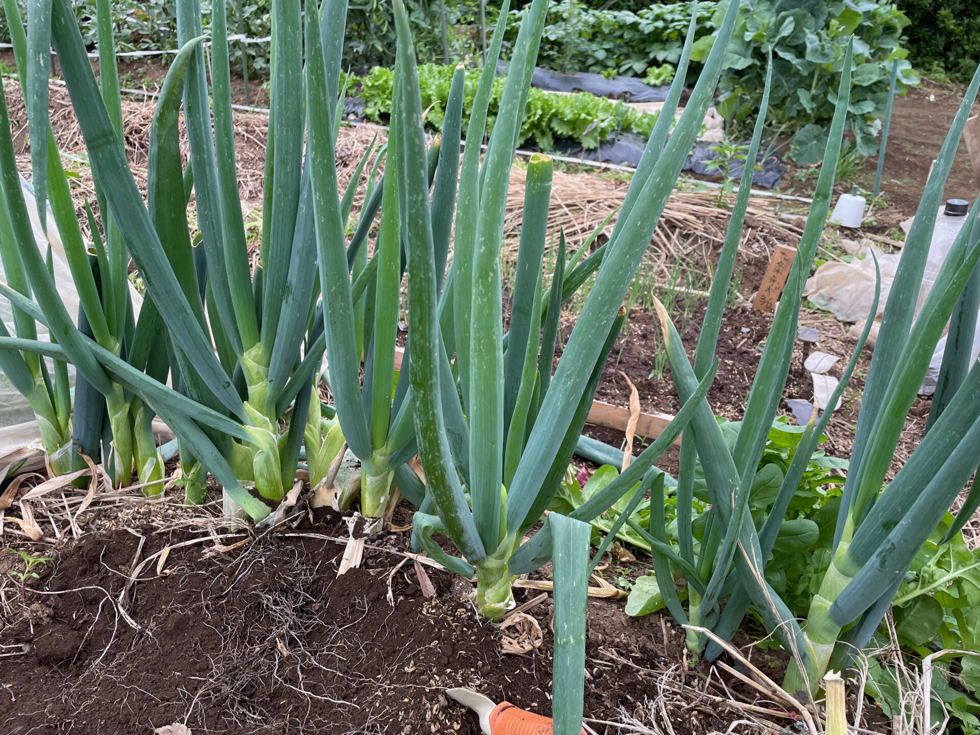本来は厳冬期あたりが収穫時期でしたが施肥量の問題などもあったのかもしれません、少し遅れて収穫時期となりました。太く立派に成長しました。種から育てるととても時間のかかる野菜ですが、分けつネギの特徴はここまで育ててしまえば、あとは勝手に増えていくという特徴があります。