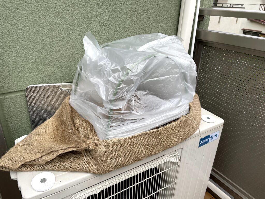 こんな感じで40リットルのゴミ袋を被せておけばビニールハウスの完成。