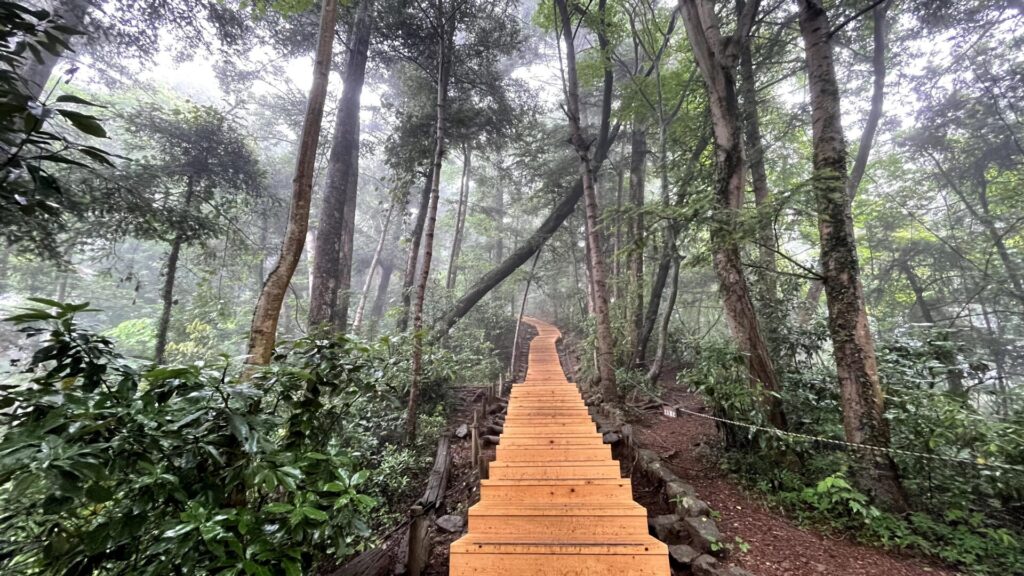 平日の雨模様だったため人は少なく、自然の音を聴きながら心地の良い自然の触れ合いになった。