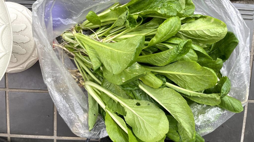 最初に収穫できた野菜は小松菜でした。自分で採った野菜がこんなにも美味しいんだ!と感動したのも小松菜でした。