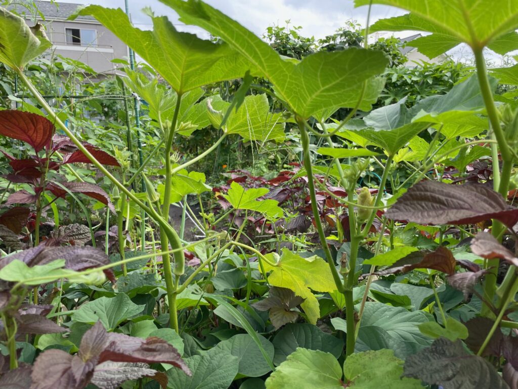 サツマイモが育ちすぎて、オクラ領域と被りながらの栽培でしたが、背丈の違いもありうまく共存しながら育てることができました。