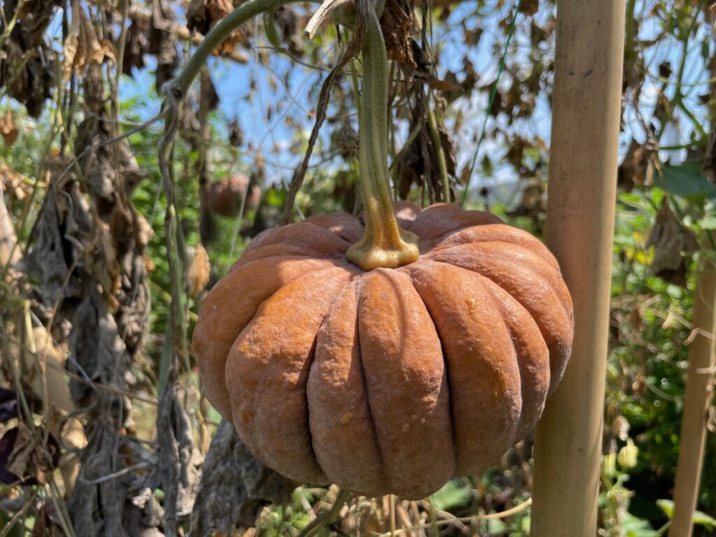 うまく成長した3つの株から9個ほどのかぼちゃが収穫できました。8月中旬くらいのことです。
